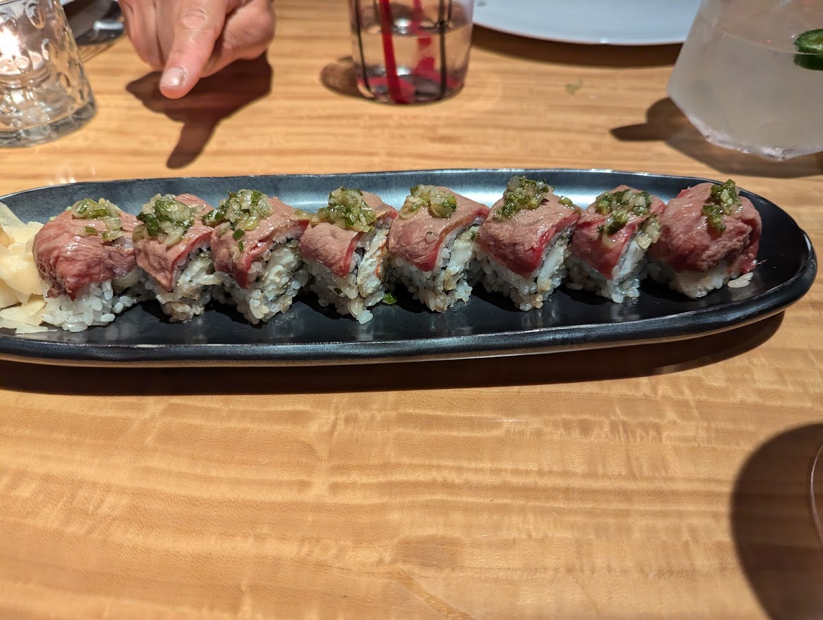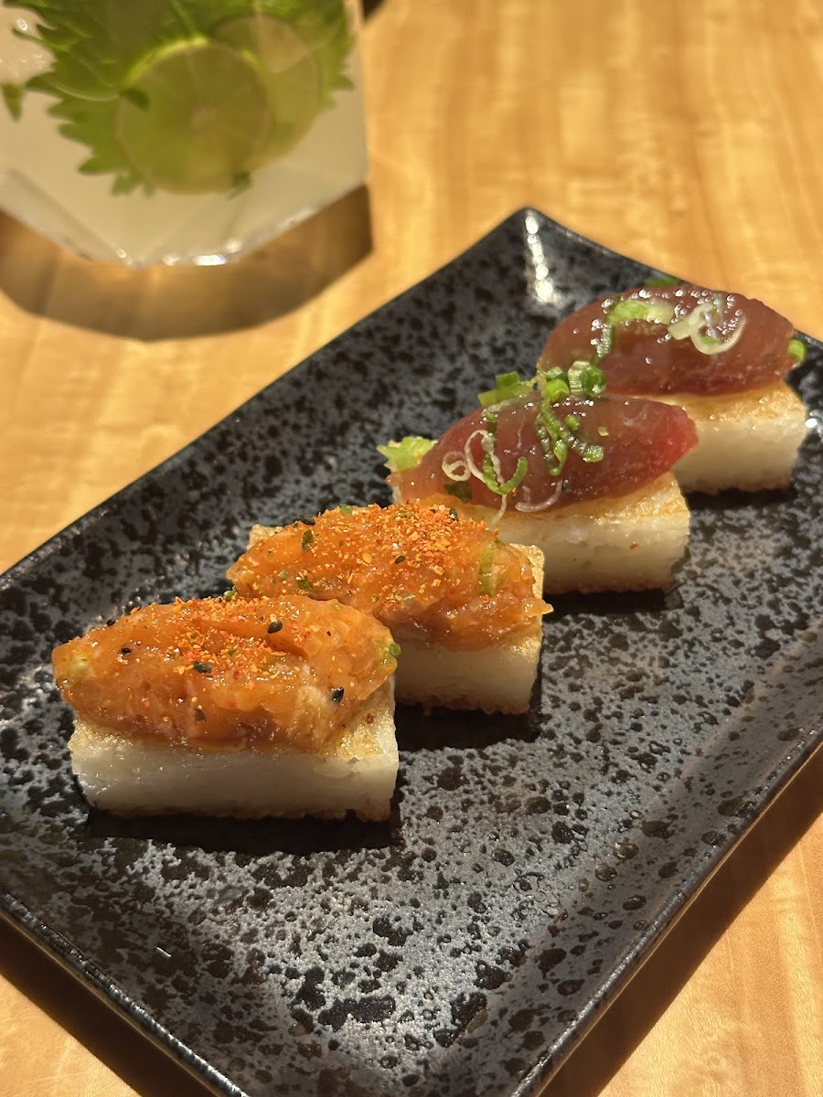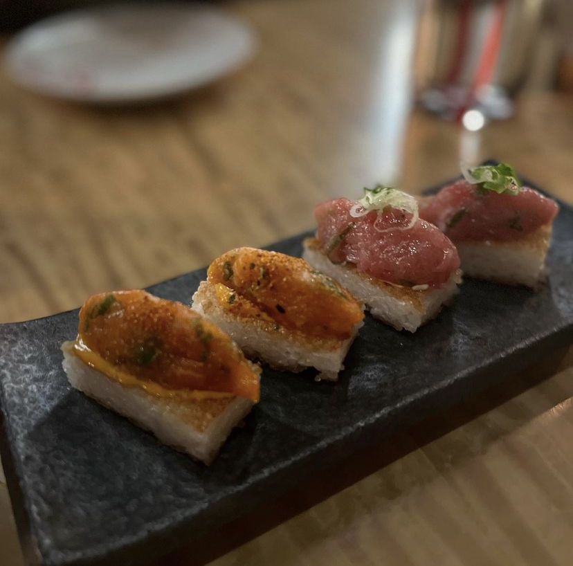 Not to be missed is the restaurant's famed Chicken Tsukune, a grilled meatball skewer featuring rich foie gras, perfect for those wanting to explore a Japanese favorite reimagined. The carefully curated menu also offers vibrant appetizers like the Rock Shrimp Tempura, coated in crisp coconut flakes and served with a luxurious green curry coconut sauce that will transport your palate to new heights.